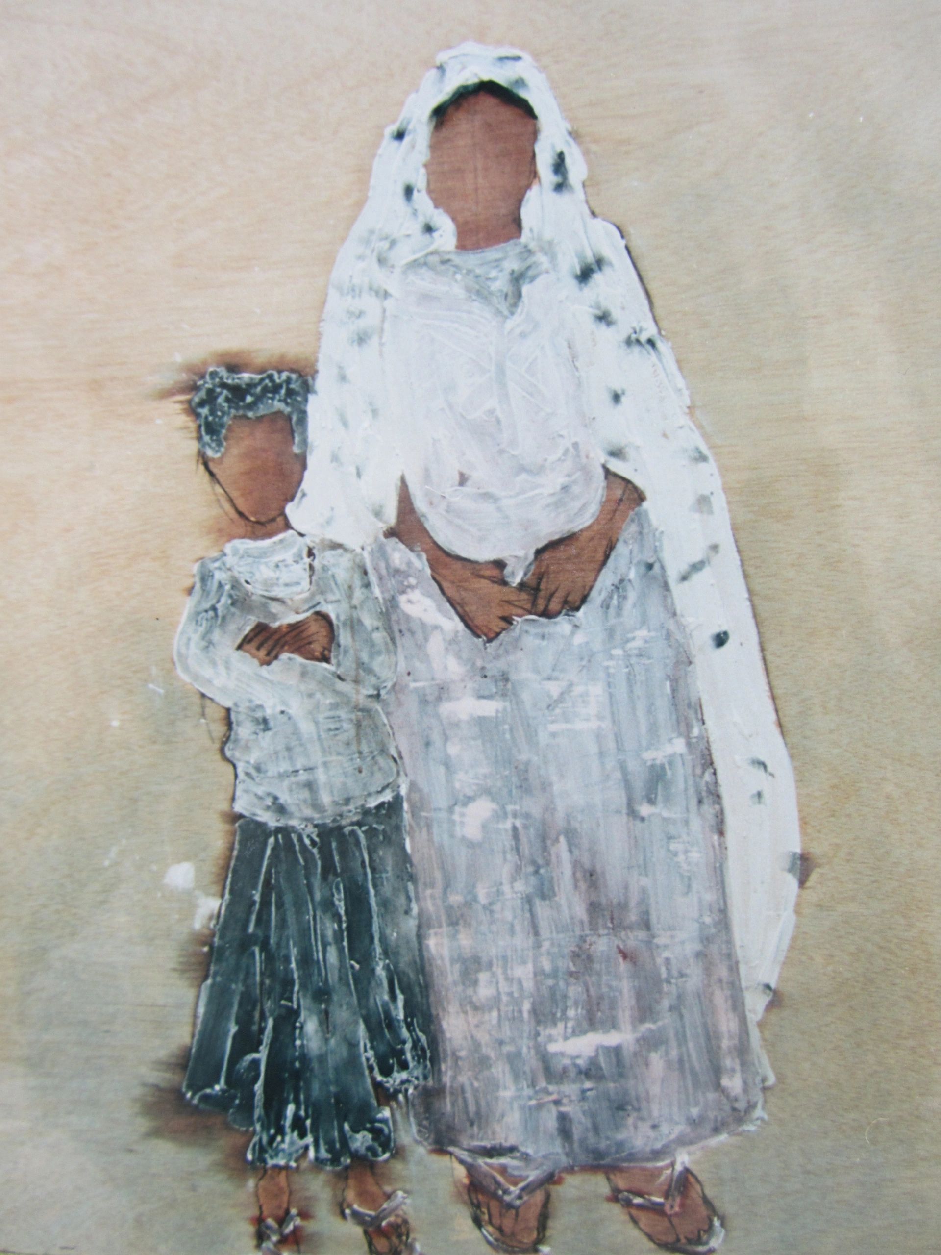 " Abuela con su nieto en el mercado "Técnica mixta150 x 110 cm.